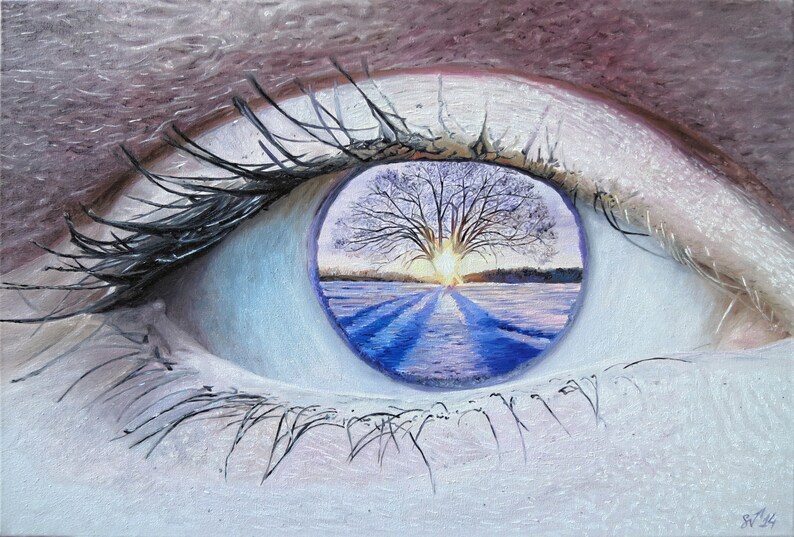 Original Oil Painting Mirror Of The Soul Surrealism Eye And Etsy