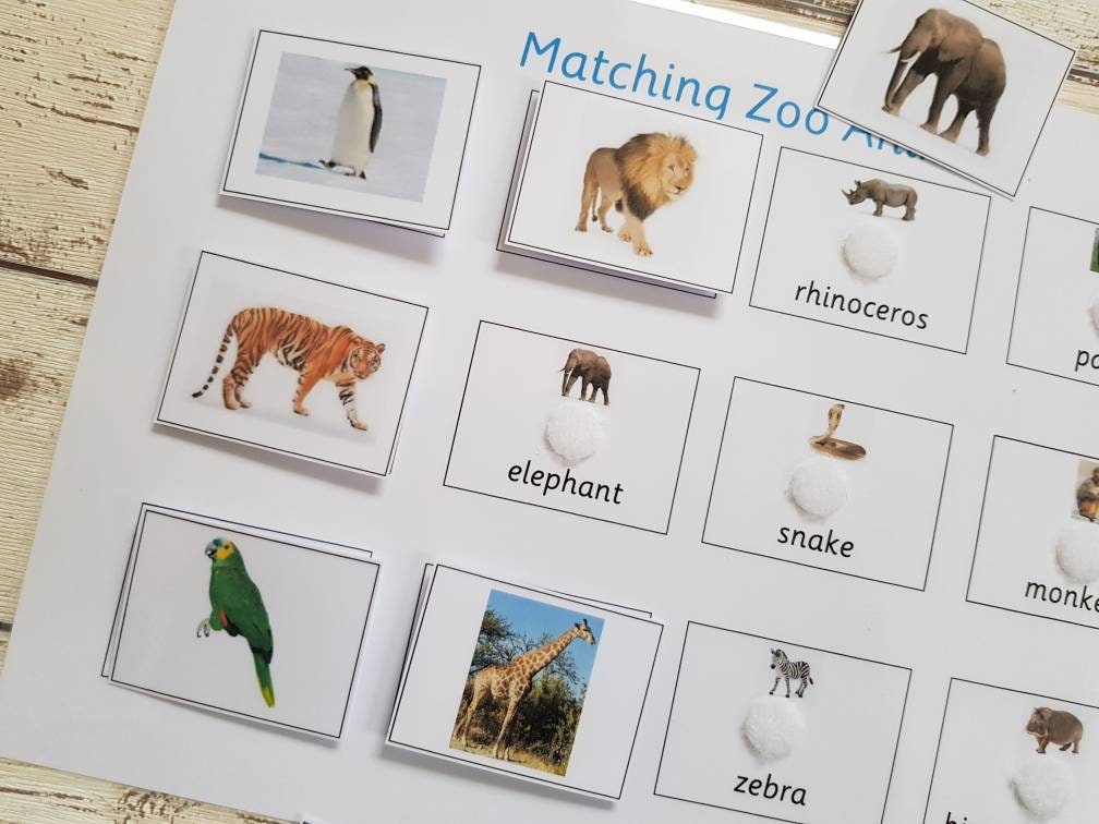 Zoo Animals Matching Game Educational Learning Resource Home Etsy Israel