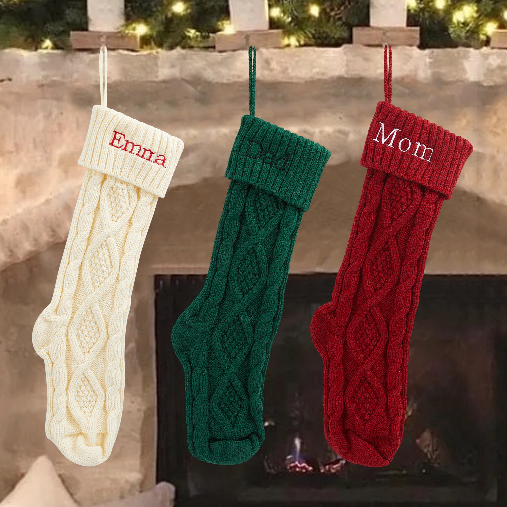 Knitted Christmas Stockings Red Ivory Green Fun Snowflake Family With Pets Cat Mouse Meow And Dog Bone Woof Knit Personalized Embroidered Etsy De